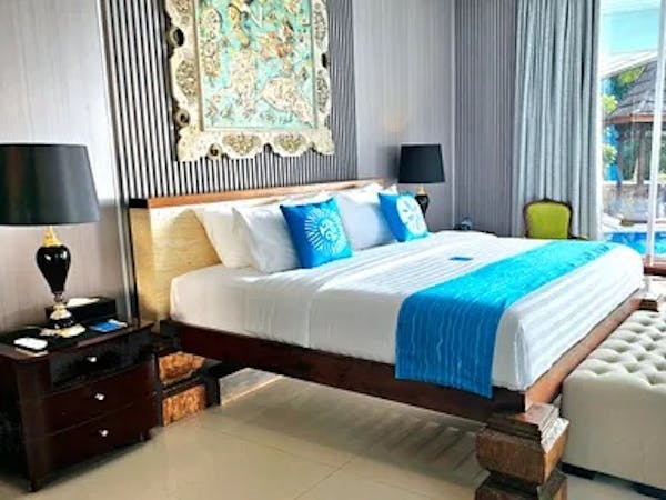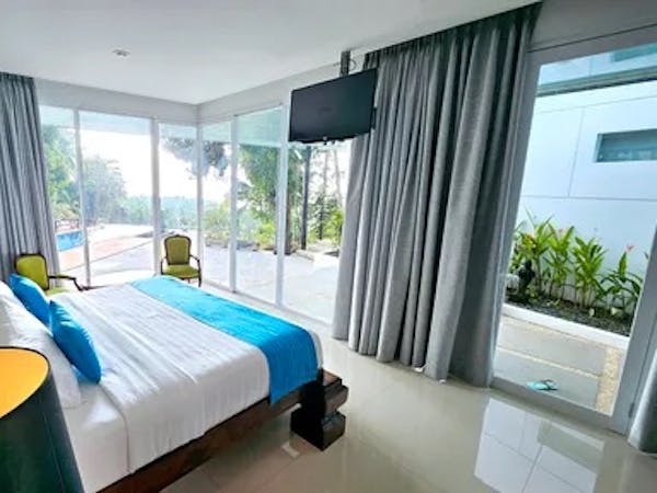 Welcome to your private oasis at Nayara Villa Desa Budo – where lush jungles meet the endless blue of the Pacific Ocean. Our 75 sqm Lekuan Pool Terrace offers a luxurious stay with direct access to an infinity pool and serene garden views. Relax in a spacious room featuring a king-size bed, elegant décor, and floor-to-ceiling windows that flood the space with natural light.
