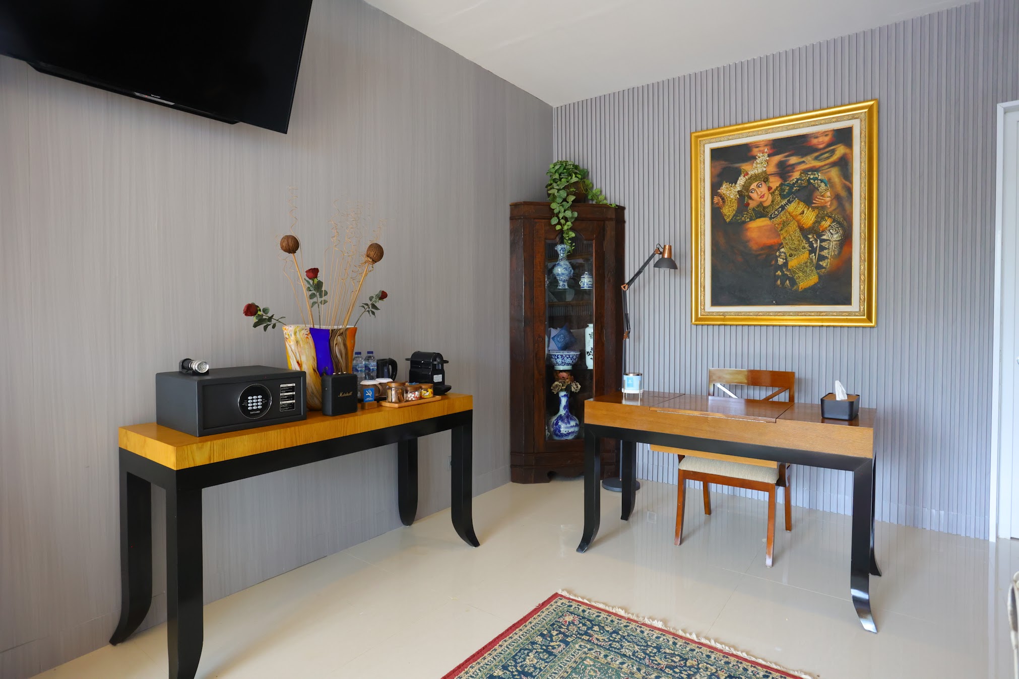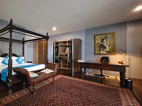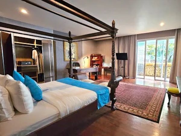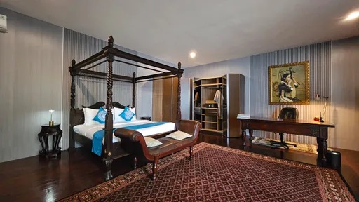 Experience refined luxury in our 85 sqm Celebes Suite, featuring a beautifully crafted four-poster king bed, elegant traditional furnishings, and serene garden views. Enjoy a private sitting area, open wardrobe with safe, a writing desk, and seamless access to lush outdoor gardens. Perfect for couples or solo travelers seeking timeless charm, comfort, and tranquility.